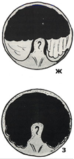 Рис.18. Методика Nesbit (схема) А - Эндоскопический вид ДГП больших размеров (с эндоуретральным типом роста) с позиции дистальной части задней уретры. Крупные боковые доли свешиваются в просвет задней уретры и соединяются вентрально в области передней комиссуры. Стрелкой обозначено направление формирования основной (боковой) борозды. Б, В - Создание плато на вентральной поверхности. Г - Создание основной борозды - боковой борозды. Стрелками обозначено направление формирования и углубления борозды. Д - Резекция основной массы ткани до основания (дна) боковых борозд. Е - Удаление ткани книзу до дна простатической полости путем углубления плато в дорсальном направлении и резекции боковых долей с обнажением волокон “внутреннего сфинктера" мочевого пузыря. Ж, 3 - Резекция апикальной ткани. Окончательный вид параколликулярной области с позиции мембранозного отдела уретры - картина “рыбьего зева”