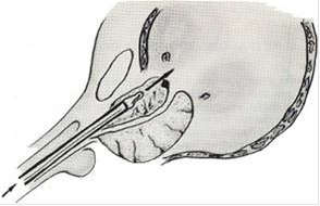 Рис.21. Вентральная перфорация простаты при форсированном проведении инструмента в мочевой пузырь