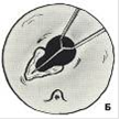 Рис. 19. Методика Barnes (схема) А - Резекция дна простатической полости - удаление средней доли (цифры обозначают последовательность горизонтальных послойных срезов). Б, В - Резекция левой боковой доли (цифрами обозначены последовательность, а стрелками направление послойных срезов). Г - Средняя и левая боковые доли ДГП резецированы. Сохраняются правая боковая доля и “защитный" слой апикальной части ДГП. Д - Правая боковая доля удалена. Капсула простаты обнажена по всей окружности задней уретры с оставлением апикальной ткани. Е - Удаление апикальной ткани ДГП путем выведения ее в зону резекции с помощью пальца, введенного в прямую кишку