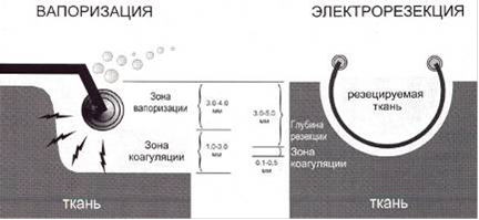 Рис.24. Тканевые эффекты, возникающие при стандартной электрорезекции и электровапоризации ДГП