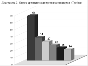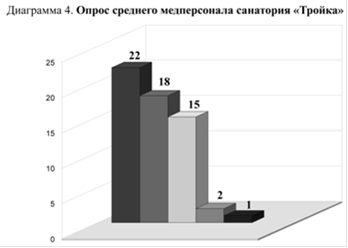 . Почти треть опрошенных привлекает хорошее отношение к ним администрации, что положительно характеризует весь руководящий состав санатория. Но и почти четверть респондентов недовольны укомплектованностью своих рабочих мест, что никак не может, в свою очередь, качественно улучшать трудоспособность сотрудников и повышать качество оказываемой медицинской помощи нуждающимся в ней больным.