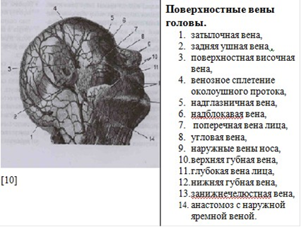 Венозная кровь от мягких покровов мозгового отдела головы оттекает по следующим венам.