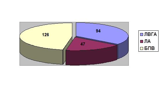 СО2 лазер был использован в 135 случаях (81.8%), из них самостоятельно ТМЛР выполнена 52 больным (31.5%), в сочетании с ТЛБАП - одному больному (0.6%), 66 больным (40%) - в сочетании с АКШ, в сочетании с МИРМ - 17 больным (10.3%) (схема 2). В среднем во время одной операции изолированной ТМЛР создавалось 29.4±5.9 каналов по передней, переднебоковой, боковой стенке ЛЖ, а так же в области верхушки. В случае же сочетания ТМЛР с методами прямой реваскуляризации миокарда этот показатель составил 22.1±4.8 каналов.