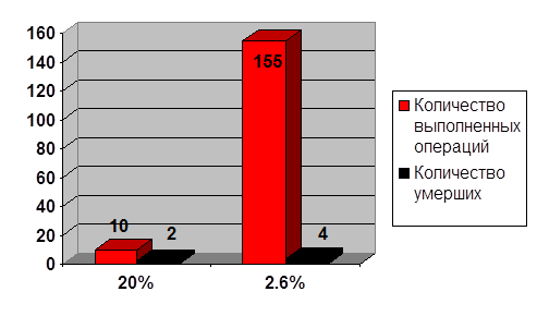 Рис. 16. Госпитальная летальность после ТМЛР на отдельных этапах освоения и выполнения операций