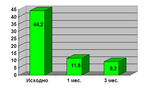 Рис. 23. Потребность в нитроглицерине у больных с сочетанными операциями до и через 3 месяца после вмешательства