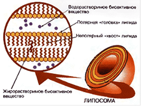 Мембрану липосом обычно формируют из тех же фосфолипидов, которые входят в состав биологических мембран: фосфатидилхолина, фосфатидилэтаноламина, фосфатидилсерина. Это позволяет достичь полной биосовместимости липосом. Липосомы готовят различными способами, например, подвергая смесь фосфолипидов и воды воздействию ультразвуком, замораживанию и оттаиванию, экструзии через фильтры с наноразмерными порами. В последнее время для получения липосом используют технологию суперкритических растворов. С помощью этих методов можно получить многослойные липосомы, а также крупные и мелкие однослойные липосомы. Размеры липосом, в зависимости от метода их изготовления, могут быть от нескольких микрон до десятков нанометров (наносомы). Если при изготовлении липосом используется водный раствор лекарственного вещества, то часть этого раствора оказывается замкнутой внутри липосомального контейнера и в виде такой лекарственной формы вводится в организм человека. Это важно в тех случаях, когда вводится токсическое соединение, например, противораковый агент, или если лекарственное вещество необходимо защитить от разрушения до момента его доставки к цели. Неполярные органические лекарственные соединения встраиваются в мембрану липосомы и также могут доставляться к цели. Для направленной доставки содержимого липосом к их поверхности ковалентно пришивают адресные моле кулы, например, антитела к поверхностным белкам клеток-мишеней, витамины. Пришивка молекул полиэтиленгликоля защищает сами липосомы от захвата клетками иммунной системы и, таким образом, увеличивает время нахождения липосом в кровотоке. Липосомы доставляют лекарственное вещество в клетки либо путем слияния с их мембраной, либо за счет эндоцитоза. Липосомы как наноконтейнеры для лекарственных веществ применяются в медицине при лечения рака, а также в составе косметических кремов.