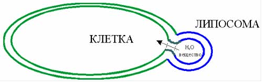 Можно себе представить также ситуацию, когда липосомальный фрагмент, завершив путь по кровеносному руслу, в конечной капиллярной петле вытекает вместе с плазмой крови в межклеточную жидкость и соприкасается с клеточной мембраной. Так как двухслойная мембрана липосомальной частицы имеет сродство (аналогична) клеточной мембране, то может произойти их слияние и внутреннее содержание липосомы как бы впрыскивается внутрь клеток.