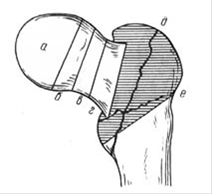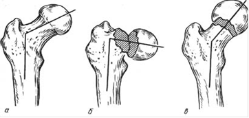 3. Головка с прилегающим отделом шейки в варусном положении - уменьшен шеечно-диафизарный угол.