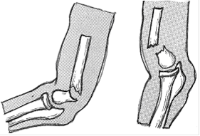 При надмыщелковом разгибательном переломе передний край дистального отломка может повредить магистральные сосуды и нервы. Это повреждение может возникнуть вторично при иммобилизации руки в выпрямленном положении.