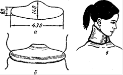 повязка при повреждениях, б - воротник, подготовленный к наложению. наложенная на шейный отдел позвоночника.