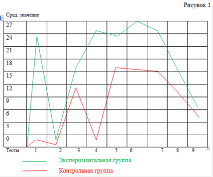 Динамика изменений средних показателей тестовых испытаний у контрольной и экспериментальной группы приведена на рисунке 1.