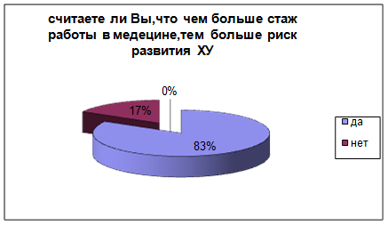 Рис.6 Считаете ли Вы, что чем больше стаж работы в медицине, тем больше риск развития ХУ