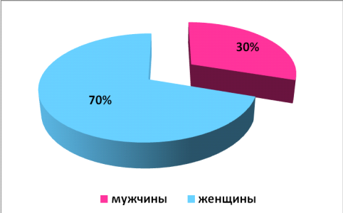 Чаще обращаются: мужчин - 30%; женщин - 70%.