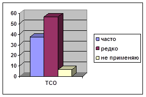 Говоря об использовании активных методов обучения, нужно отметить особую роль технических средств обучения (ТСО). Использование ТСО в учебно-воспитательном процессе сегодня становится настоятельной необходимостью, так как это способствует решению ряда учебных и воспитательных задач. К числу главных из них относятся: повышение эффективности обучения; развитие самостоятельного мышления; повышение интереса к процессу обучения. По данным анкетирования ТСО используют 37,5%, редко применяют 56,3% преподавателей (см. рис. 8).