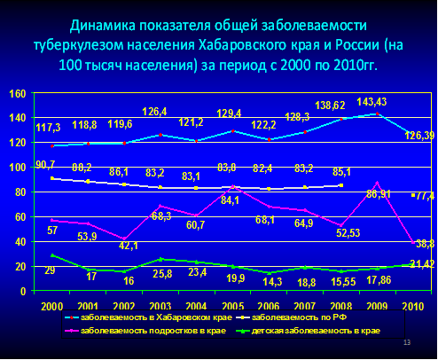 Заболеваемость туберкулезом по России и в Хабаровском крае