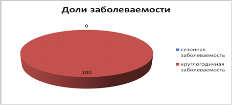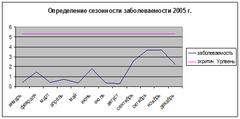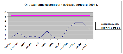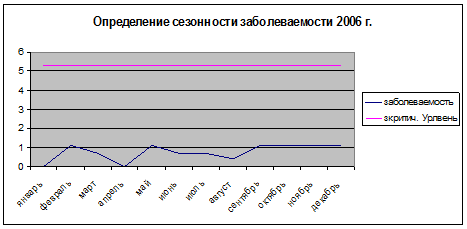 Из графика видим, что заболеваемость в течении года находилась ниже критич. уровня, следовательно, вся заболеваемость в этом году входила в круглогодичную.
