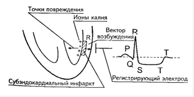 Основным ЭКГ- признаком субэндокардиального инфаркта является смещение сегмента S-T ниже изоэлектрической линии, при этом не регистрируется патологический Q зубец в отведениях aVL и I.